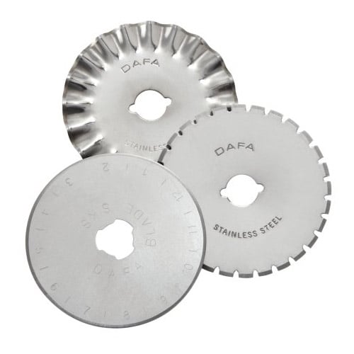 - Includes blades for rotary cutting, scoring, perforating, and wave cutting.