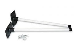 • Two pieces of the Banner Trak Universal Mount Kit in black, showing the adjustable clamp design for secure banner mounting.