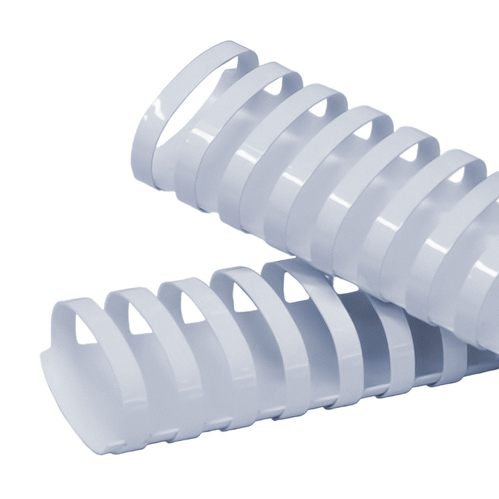These white 2" plastic combs are some of the highest quality binding combs on the market and are designed to fit any standard plastic comb binding machine . Hand-rolled to provide a smooth glossy finish, these 2" white combs allow pages to flip freely and lie flat for easy reading and margin to margin photocopying. Designed for use with 8.5" x 11" pages, these 2" spines can hold about 425 sheets. Each 19-ring white 2" plastic binding comb is made of rigid PVC plastic that won't scratch, chip, peel, or discolor. Get 40 white 2" plastic combs with every order. Product number PC200WH.