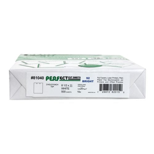Have you ever tried to run perforated paper through your copier or printer? Until now the idea of running these types of papers through your equipment was nothing but trouble. However, these sheets are perfectly perforated every time. Run through rollers to remove any potential curl and then sealed in moisture resistant reams to ensure the highest quality results Our high quality Xerographic 20# and 24# cut sheets are perfect for high speed copiers, office copiers, desktop laser and ink jet printers, DocuTech style printers, along with small offset presses. Each or perforation is clean and consistent, every sheet, every ream, every time. There's no downtime or press service. It's the way every single sheet arrives...PERFECT. Pre punched and pre perforated sheets offer more productivity, time saving and reduced operating expenses which all add up to a more profitable bottom line.