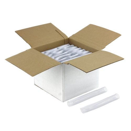 This 32mm White spiral binding coil is designed for use in any 4:1 pitch spiral coil binding machine. ColorCoil offers a quality, professional look while binding documents up to 2" thick. Although these particular coils are White we carry 4:1 pitch coil in 45 different colors and in sizes up to 50mm in diameter. These 32mm coils are designed to bind documents that are up to 29mm (1 1/8") including covers.