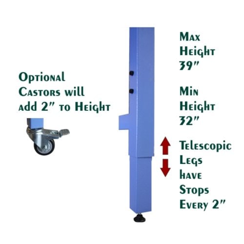 This 5' x 8' Rhino Work Table is custom made for wide format cutting. It is rock steady and made to be a permanent solution for fast and accurate trimming. It is featured with an all steel welded frames with a weight capacity of up to 1,500 lbs. Abrasion resistant blue powder coating looks good while providing optimum durability. Welded triple rails with corner braces add excellent stability. An anodized aluminum trim on all 4 sides protects edges and gives a modern, stylish look.This 5' x 8' Rhino Work Table has telescopic adjustable height legs with stops at every 2" offering a maximum height of 39" and a minimum height of 32". Its steel leveling feet allow for micro height adjustments for inconsistancies in your floor providing a perfectly level sturdy work surface. A self-healing cutting mat is included with your Rhino Table to keep the table top scratch free. The translucent non-glare mat looks great while it functions efforlessly. This 5' x 8' Rhino Work Table includes a seamless 3/4" thick MDF top and is backed by a 5 year Manufacturer's Warranty (excluding cutting mat).