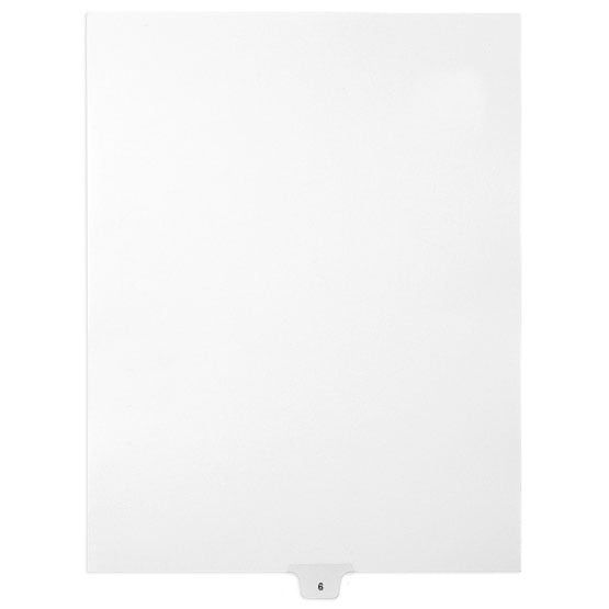 6 - Avery Style Single Number Letter Size Bottom Tab Legal Indexes - 1 Set