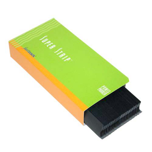 These black 8.5" narrow Powis Parker Fastback Super Strips bind books and documents with speed, strength, and versatility. These strips are compatible with the Fastback 20, Fastback 15xs, and the Fastback 11. These black 8.5" strips are the ideal choice for foil printing spine titles with the PowisPrinter or for making hard cover books. Measuring 8.5" in length, the narrow Super Strips have a capacity of 1/2" or 10-125 pages. Fastback Super Strips are also available in medium and wide lengths as well as an assortment of different colors. These black 8.5" narrow Super Strips are designated with the product number N001. Get 500 strips with every order.