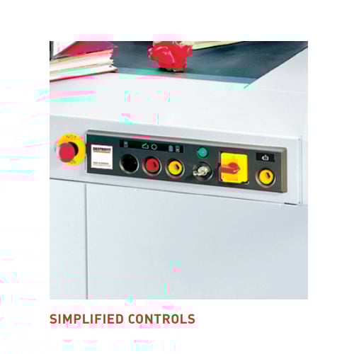 For organizations with a need for high volume shredding, an in-house shredding program based around Destroyit high capacity shredders is the most secure and economical way of disposing sensitive documents. Using a shredding service adds needless risk and expense. When you turn over documents to an outside company for disposal, you are effectively relinquishing control of your document security program. The more hands your documents pass through, the greater the chance they will be viewed by others. The Destroyit 5009 has an easy-to-use control panel with push buttons for forward/stop/reverse. It has a safety lock and key, main switch, and emergency stop button and an automatic reverse and stop feature in case of paper jam . The Destroyit 5009 also includes other great features such as optical indicators show operational status, two automatic speed modes: "Power" for bulk shredding, and "Speed" for high speed shredding, high quality, hardened steel cutting shafts are soft metal resistant and can take CDs, VHS tapes (cross-cut only), and hardbound documents, and a convenient, centralized oiler for lubrication of the cutting head. It comes with a lifetime Manufacturer's Warranty on cutting shafts and has two high powered 3 phase motor (24 maximum horsepower) rated for continuous operation.