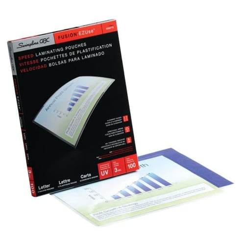 - Thermal lamination pouch includes visible EZUse features that magically disappear after lamination.