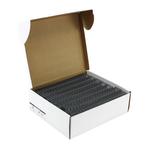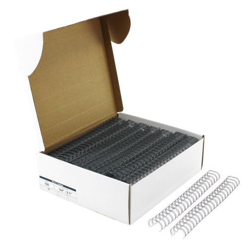 These high quality Gray 3/4" 2:1 Pitch Twin Loop Wires are some of the best wire binding spines on the market today. Also called Wire-O, WireBind, and Double Loop Wire, these gray 3/4" 2:1 pitch elements let pages lie flat with 360 Degrees rotation for convenient note-taking and photocopying as well as provide a permanent bind to your documents--meaning your pages stay secure and protected. Not only that, but these gray 3/4" 2:1 pitch wire spines look a tad more refined than a plastic comb or spiral coil. Measuring 3/4" in diameter, these gray twin loop wires can hold approximately 140-160 sheets. These gray 3/4" 2:1 pitch twin loop wires come open in a "C" shape, allowing you to insert the spines into your punched pages and then simply use your wire binding machine or wire closer to finish your books. Product number W340GY.