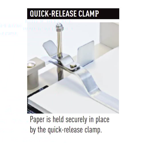 - In order to make the MBM 25 as user-friendly as possible, the manufacturer has outfitted the device with a quick release clamp and self-centering side guides. These features will keep your sheets in place and well-aligned so you can get the results you need.