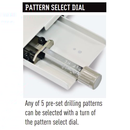 - This machine is preprogrammed with 5 drilling patterns. To select the pattern you want, all you need to do is turn a dial on the side of the machine.