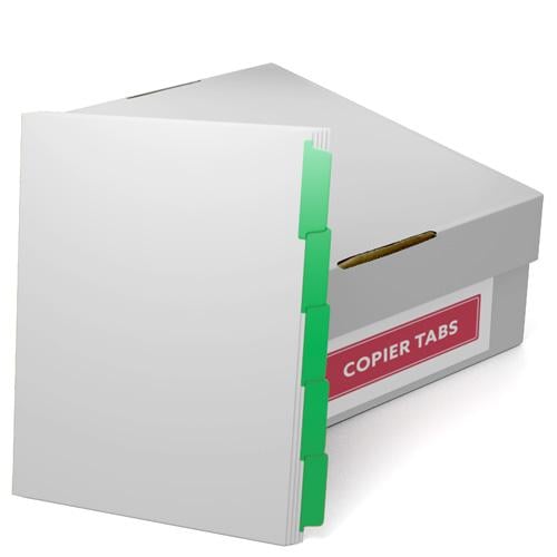 Say goodbye to traditional copier tabs with MyBinding 110lb 1/10th Cut Straight Collated Copier Tabs With Green Mylar. Add color and life in organizing and highlighting your bound documents with these colored Mylar coated copier tabs. These copier tabs work with all leading copier/printers including Xerox, Canon, IBM, Ricoh, Heidelberg, Oce and others. Make your any bound documents easier to use with these MyBinding 110lb 1/10th Cut Straight Collated Copier Tabs With Green Mylar. Get 1 carton on every order.