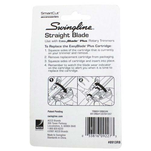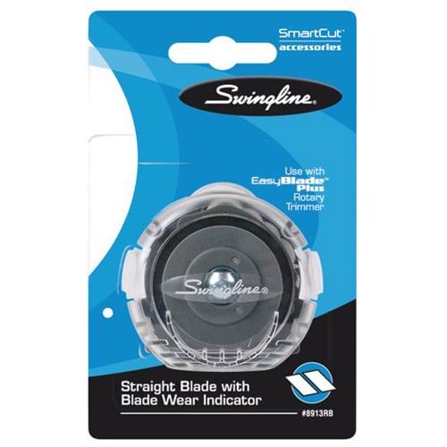The new Swingline EasyBlade Plus Rotary Trimmer makes trimming photos, labels, posters, banners, paper, or nearly anything else a breeze. The innovative blade for the Swingline EasyBlade Plus features an indicator light that changes from green to red when you need to change the blade. These replacement blades make changing the blade for the EasyBlade Plus Rotary Trimmer easier than ever. Contained within a cartridge to prevent accidental cutting and for safety, this replacement blade makes it simple to change in order for you to keep on trimming.